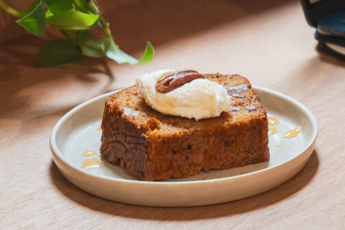 Tous nos desserts sont faits maison, avec des ingrédients bruts, bio et sans additifs. Brownie pécan, moelleux à la crème de marrons, crumble aux pommes, clafoutis aux fruits de saison, banana bread : des recettes simples et généreuses. Nous privilégions le goût naturel des ingrédients, la juste dose de sucre, et des textures réconfortantes. Des options sans gluten sont proposées chaque jour.