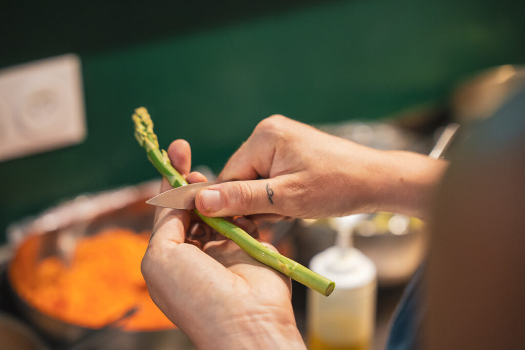 Tous nos plats sont cuisinés à partir d’ingrédients issus de l’agriculture biologique, sans pesticides chimiques ni additifs. Nous nous approvisionnons directement auprès de producteurs bio de Touraine, en fruits, légumes, œufs, fromages, farines ou pains au levain. Pour les produits que nous ne trouvons pas localement, tels que l’huile d’olive, les agrumes ou le chocolat, nous choisissons des filières biologiques, équitables et traçables. Une cuisine transparente, ancrée dans son territoire et réellement respectueuse du vivant.