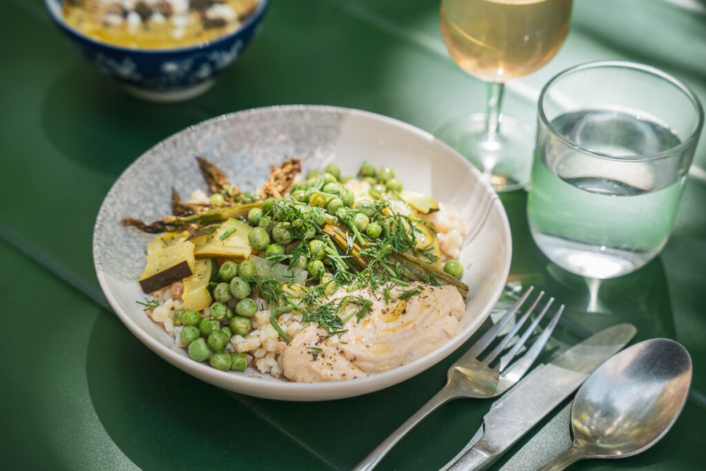 Chaque midi, La Fourchette Paysanne vous propose dans son restaurant un plat végétarien maison, préparé à partir de produits bio, locaux et de saison. Mijotés, poêlées, salades composées, gratins et autres assiettes complètes : notre cuisine change deux fois par semaine selon les récoltes et l’inspiration de notre Cheffe Zakia Chiaudano Gallard. Un déjeuner équilibré comprenant toujours une protéine, sans additifs ni produits ultra-transformés, sans gluten les jeudis et vendredis. Formule Entrée + Plat ou Plat + Dessert à 15,90€. Un café ou une citronnade maison sont offerts dans toutes nos formules.