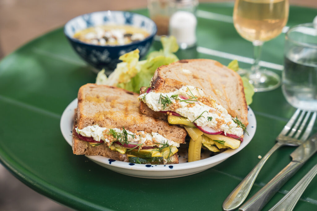 À La Fourchette Paysanne, nos sandwichs sont préparés chaque jour avec du pain bio de paysans-boulangers, issus de semences de blés anciens. Nos sandwichs sont donc plus digestes. Houmous, légumes rôtis, pickles, pesto frais, fromages fermiers, tartinades ou œufs bio selon les saisons : chaque recette est pensée pour allier saveur, texture et équilibre. Inspirés par une cuisine méditerranéenne et végétale, nos sandwichs sont toastés minute pour une pause déjeuner rapide et réconfortante, avec options carnées ou vegan sur demande. Formule Entrée + Plat ou Plat + Dessert à 13,90€. Un café ou une citronnade maison sont offerts dans toutes nos formules. Une option jambon est possible pour les amateurs de viande !